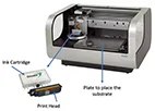FUJIFILM Dimatix, a company that develops and manufactures precision printheads and systems, has a DMP-2850 printing platform that is currently used to accurately deposit a wide range of liquid materials on a wide range of material surfaces in the commercial and industrial markets.