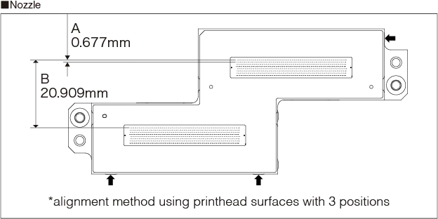 | Nozzle spacing (Row to row distance) | A : 0.677mm (8 pixels of 600npi) B : 20.909mm (494 pixels of 600npi) |